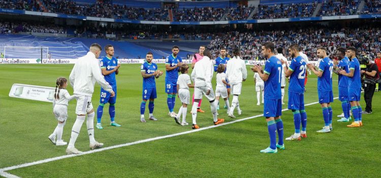 Los futbolistas del Getafe hicieron el tradicional pasillo a los jugadores del Real Madrid, minutos antes de que comenzara el encuentro entre ambos en el estadio Santiago Bernabéu, como muestra de reconocimiento por el título de Copa del Rey que logró el conjunto blanco el pasado domingo al vencer 2-1 a Osasuna.