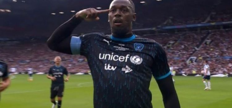 Con el dorsal 9″58, haciendo referencia a su marca en el récord mundial de los 100 metros, Bolt recibió una asistencia de Francesco Totti y abrió el marcador con una definición cruzada a la red en un duelo que enfrentó a un combinado de la Selección de Inglaterra contra Resto del Mundo, en el marco de su quinta participación.