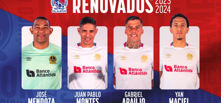 El Club Olimpia Deportivo informó este viernes la renovación de contrato de los jugadores los brasileños Yan Maciel y Gabriel Araújo, los hondureños José Mendoza y Juan Pablo Montes, quien han sido parte del éxito del equipo en las últimas temporadas.