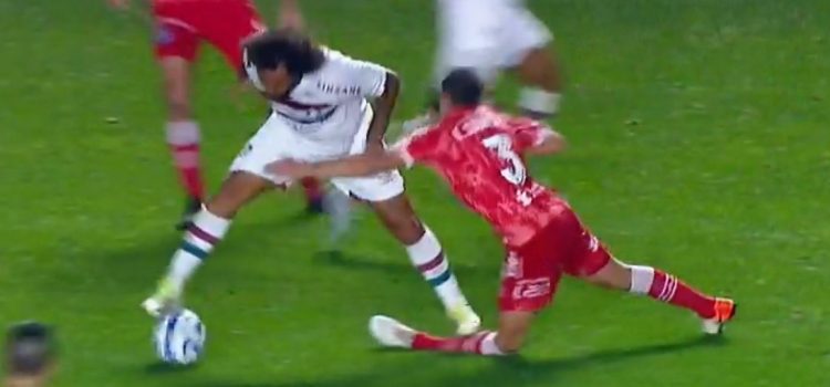 El brasileño Marcelo Vieira da Silva, ganador de cinco Champions League con el Real Madrid, cometió una fuerte patada sobre Luciano Sánchez en el partido entre Fluminense y Argentinos Juniors correspondiente a la ida de octavos de final de la Copa Libertadores.