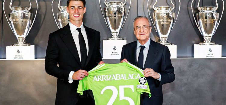 El portero Kepa Arrizabalaga fue presentado como nuevo jugador del Real Madrid, club en el que lucirá el dorsal 25, con el deseo de «conseguir muchos títulos» y engrandecer «la leyenda» del club blanco por el que aseguró que trabajará con «compromiso y esfuerzo».