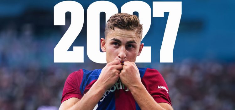 El Barcelona anunció este martes la renovación del contrato del joven Fermín López, que le vinculará con el club azulgrana hasta el 30 de junio de 2027 con una cláusula de rescisión fijada en 400 millones de euros.