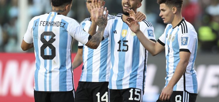 Argentina, campeona del mundo, goleó a domicilio 0-3 a una Bolivia que pecó de respetuosa en la altitud de La Paz con goles de Enzo Fernández, Nicolás Tagliafico y Nicolás González, mientras su astro Lionel Messi presenció desde el banco de suplentes.