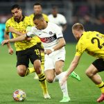 La posesión abrumadora de los locales se centró más en los ataques por dentro, pues el Borussia blindó bien los costados con Wolf y Ryerson. En el cogollo del juego, el uruguayo Manu Ugarte impuso su vigor frente al veterano Emre Can, quien pedía con insistencia de los suyos a subir las líneas.