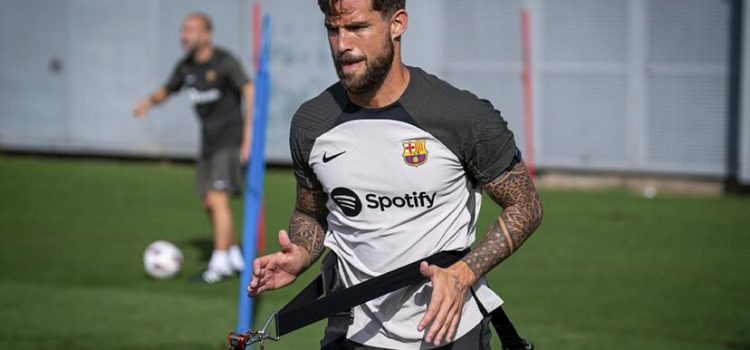 El central Íñigo Martínez fue la novedad en el entrenamiento del Barcelona de este martes, en el que pudo llevar a cabo parte de la sesión con el resto de sus compañeros pese a no haber recibido aún el alta médica por su lesión en el bíceps femoral del muslo derecho.