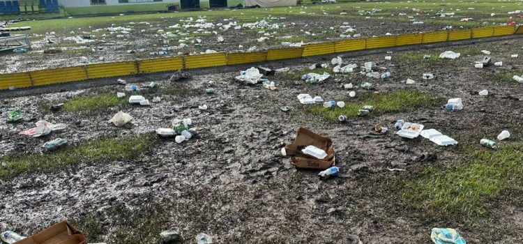«Como se observa el daño es bastante grave, trataremos de lavar el campo, hay partes que no se puede recuperar la grama, hay que fraguar la grama con tierra selecta y lleva como dos semanas, son pérdidas económicas, no solo el equipo, sino los comerciantes que llega a las afueras de la instalación. Es un daño grabe de casi 300 a 400 mil lempiras».