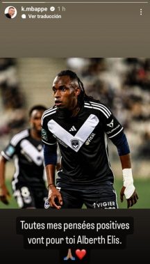 Por medio de su cuenta de Instagram, Mbappé, campeón del mundo en 2018, dedicó un emotivo mensaje al catracho: «Todos mis pensamientos positivos van para ti, Albert Elis», que publicó con una imagen del futbolista hondureño.