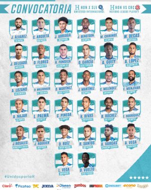 La representación hondureña para el trascendental duelo ante los ticos reporta las bajas de Edrick Menjívar, Enrique Facussé, Denil Maldonado, Joseph Rosales y ‘Choco’ Lozano por suspensión, así como ‘Buba’ López, Marlon Licona, Bryan Acosta y Alberth Elis por lesión; además del descartado Romell Quioto. Luis Palma, jugador del Celtic, está en duda por lesión, aunque ha sido convocado.