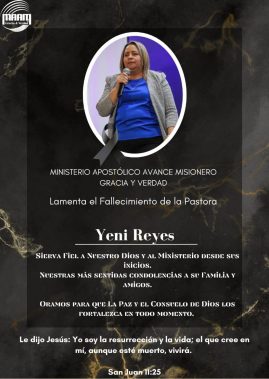 “La Iglesia Evangélica Fuente de Amor lamenta el sensible fallecimiento de la Pastora y amiga Jenny de Matamoros. Hacemos llegar nuestras más sentidas palabras de condolencias a su esposo Pastor Rubén Matamoros, a sus hijos y a todos sus familiares y amigos. Orando para que Dios sea su consuelo en este momento difícil”, se lee entre los mensajes en las redes sociales.