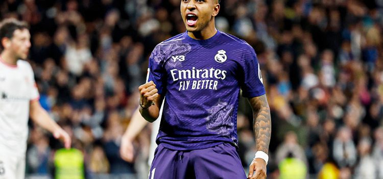 No tardó el equipo de Carlo Ancelotti en ponerse con ventaja en el marcador. A los ocho minutos, Rodrygo controló el balón en la medular y se perfiló en la frontal para batir desde lejos al meta vasco y poner el 1-0. Un golazo, el noveno en Liga en su cuenta personal.