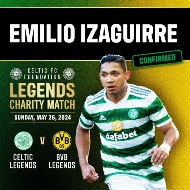 Izaguirre regresará a Paradise el próximo mes cuando participe en el partido de Leyendas de la Fundación Celtic FC, el domingo 26 de mayo ante las Leyendas del Borussia Dortmund de Alemania.