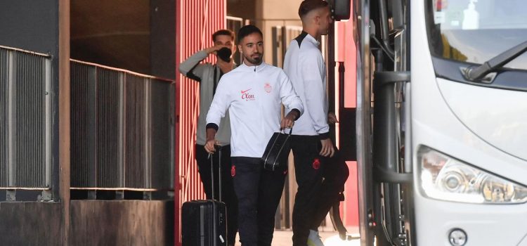 La afición del Mallorca ha tributado una calurosa despedida al equipo, que este viernes ha emprendido desde Son Moix el viaje a Sevilla para disputar mañana la final de la Copa del Rey frente al Athletic Club de Bilbao en el estadio de La Cartuja.