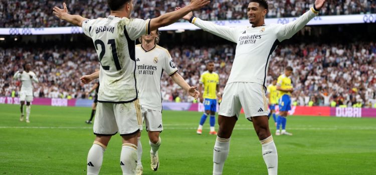 El Real Madrid hizo su parte para cantar el alirón y ganó sin problemas al Cádiz 3-0 en el estadio Santiago Bernabéu y ahora espera el resultado del partido entre el Girona y el Barcelona para poder celebrar el título de Liga. Si los de Xavi no ganan en Montilivi, los blancos serán este sábado campeones.