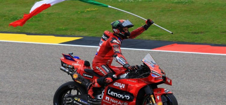 El piloto italiano Francesco ‘Pecco’ Bagnaia (Ducati Desmosedici GP24) se aprovechó de la caída del español Jorge Martín en la penúltima vuelta y se impuso en el Gran Premio de Alemania, en el circuito de Sachsenring, en el este del territorio alemán.