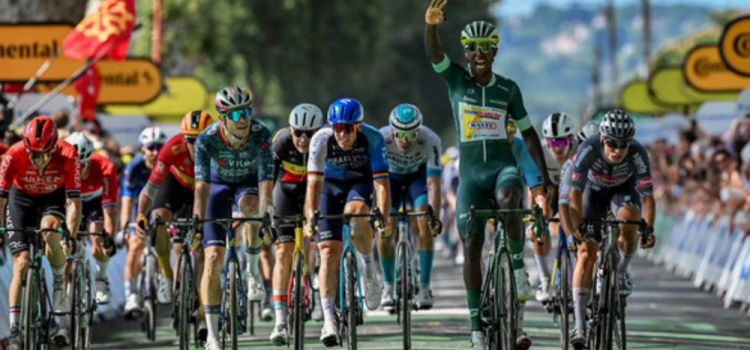 El ciclista eritreo Biniam Girmay ganó su tercera etapa en este Tour de Francia al imponerse al esprint este jueves en la meta de Villeneuve-sur-Lot, donde el esloveno Primoz Roglic perdió más de un minuto por una caída.