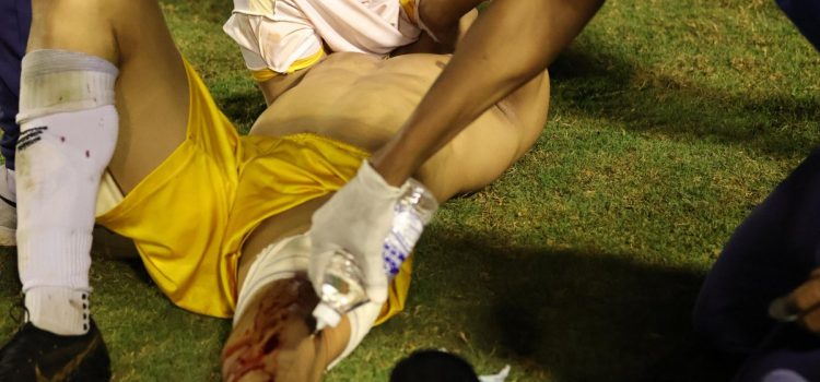 Un futbolista brasileño fue herido por una bala de goma disparada a quemarropa por un policía tras una discusión con un equipo rival al finalizar un partido disputado la noche del miércoles en Goiás (centro), según denunció su club, el Gremio Anápolis.