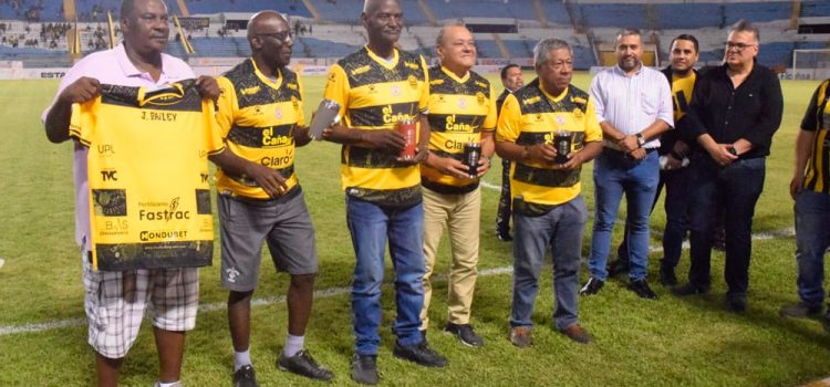 En el entretiempo del partido, la junta directiva del Real España aprovechó para tributar un emotivo homenaje a sus exfiguras y exmundialistas Allan Anthony Costly, Carlos Orlando Caballero, Julio César Arzú, Jimmy James Bailey y Ramón Enrique Maradiaga.
