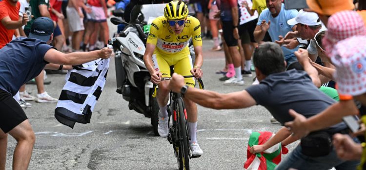 Ayudado por su compañero Adam Yates en un primer momento, fue ampliando ya en solitario su diferencia con Vingegaard para dar un nuevo paso hacia la victoria final que le corone como el primer corredor desde 1998 en imponerse en Giro y Tour el mismo año.