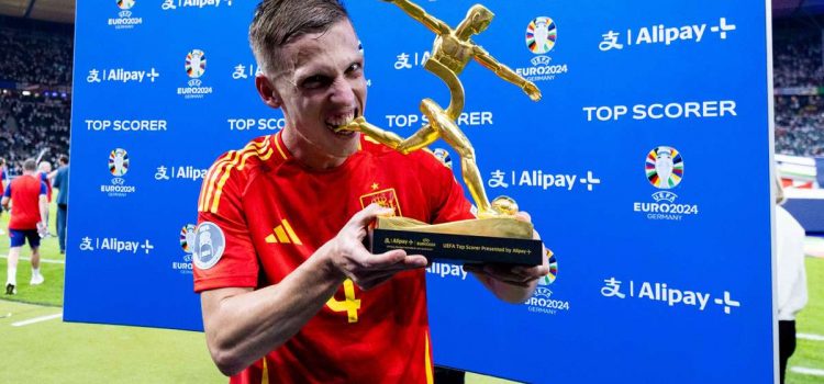 Dani Olmo es el máximo goleador de la Eurocopa 2024, gracias a sus tres tantos, pero también a sus dos asistencias que han desempatado a su favor con el inglés Harry Kane, el alemán Jamal Musiala, el eslovaco Ivan Schranz, el georgiano Georges Mikautadze y el neerlandés Cody Gakpo.