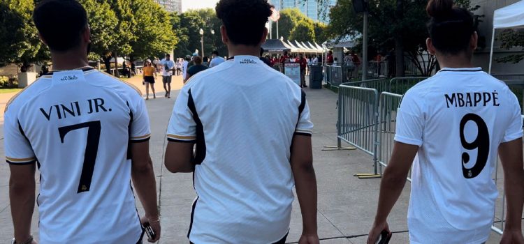 Mbappé, Vinícius Junior y Jude Bellingham son los nombres que más se ven en las camisetas de los muchos aficionados locales que acudieron al Soldier Field para ver el primer ensayo del Madrid de cara a la nueva temporada.
