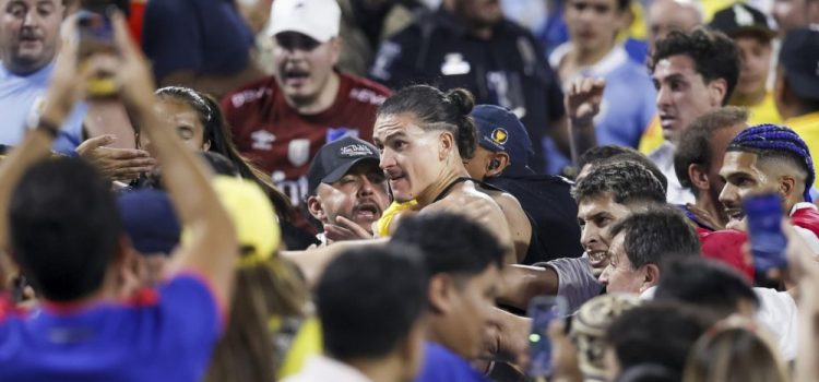 En los momentos posteriores al partido ante los cafeteros, disputado en la ciudad estadounidense de Charlotte, varios jugadores de la Celeste -entre ellos Darwin Núñez, Ronald Araújo y José María Giménez- saltaron a la grada para pelear con hinchas colombianos.