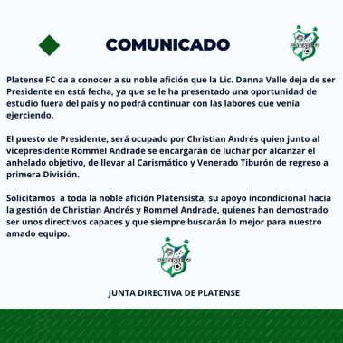La junta directiva del Platense de Puerto Cortés anunció este sábado que tendrán un nuevo presidente en el equipo que en esta temporada 2024-2025 busca su regreso a Primera División.