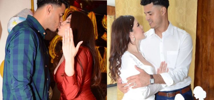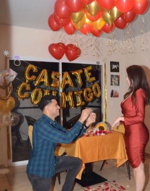 En un momento muy especial, Celio se arrodilló ante ella con globos que formaban la frase «cásate conmigo», un gesto que selló el compromiso de la pareja.