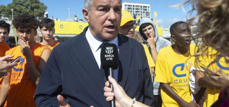 Durante la jornada de Puertas Abiertas de la Fundación Cruyff, en la que más de 900 niños, con y sin discapacidad, disfrutaron de distintas disciplinas deportivas adaptadas a sus capacidades, Laporta se saludó, conversó y se hizo fotos con los jóvenes.