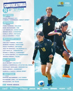 El entrenador colombiano Mario Abadía realizó una nueva convocatoria de la selección Femenina Sub-17 de Honduras para continuar con los trabajos de preparación para e Torneo FIFA Forward 2025 y al proceso eliminatorio.