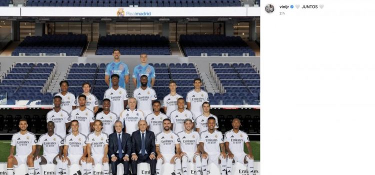 Unidad en la que insistió el brasileño este martes a través de sus redes sociales. “Juntos”, escribió el atacante en un mensaje acompañado de dos corazones blancos y una foto de la primera plantilla de la presente temporada junto al presidente Florentino Pérez y al presidente de honor José Martínez ‘Pirri’.