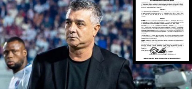 Además en el documento quedó escrito, que durante el periodo de suspensión, Diego Vázquez tiene prohibido ingresar a los estadios donde Motagua juegue.
