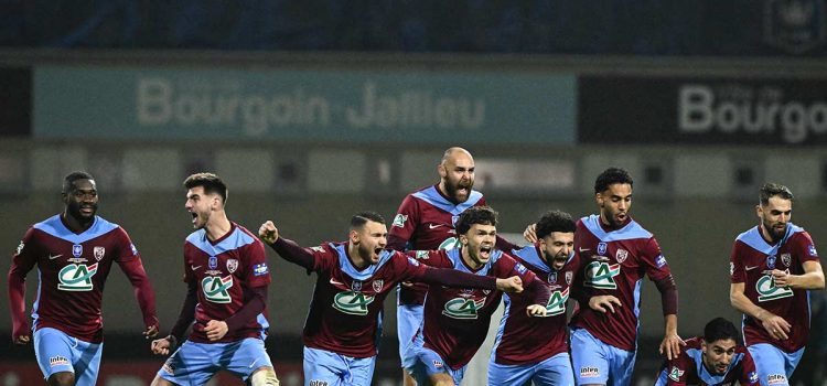 En Bourgoin-Jallieu, el equipo de la pequeña localidad del este de Francia apeó al actual sexto clasificado de la Ligue 1 en los penales (4-2), después de que los 90 minutos reglamentarios concluyesen con 2-2 bajo una temperatura glacial y sobre un césped que no se hallaba en perfecto estado.