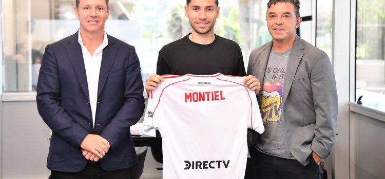 Poco antes, el club ‘millonario’ había publicado un video con imágenes de Montiel con la camiseta franjirroja y con la celeste y blanca de Argentina.